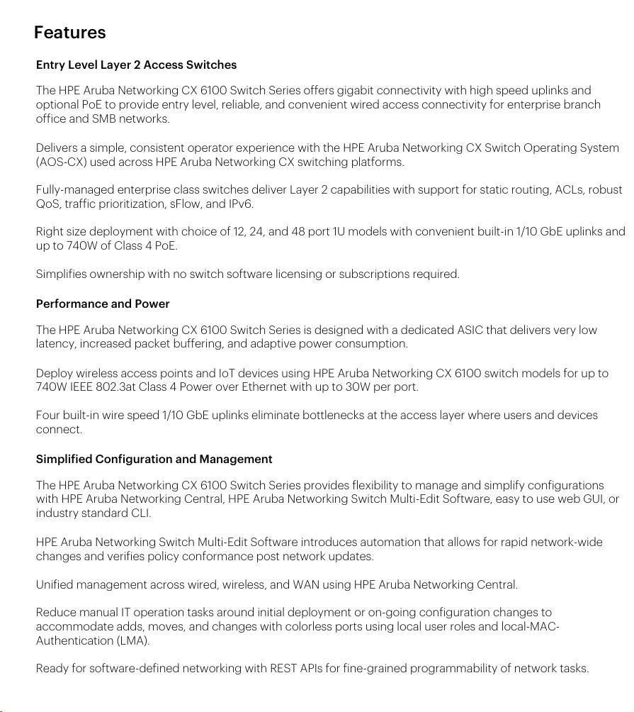 Power supplies | Fixed power supply (165W) Up to 139W of Class 4 PoE Power |