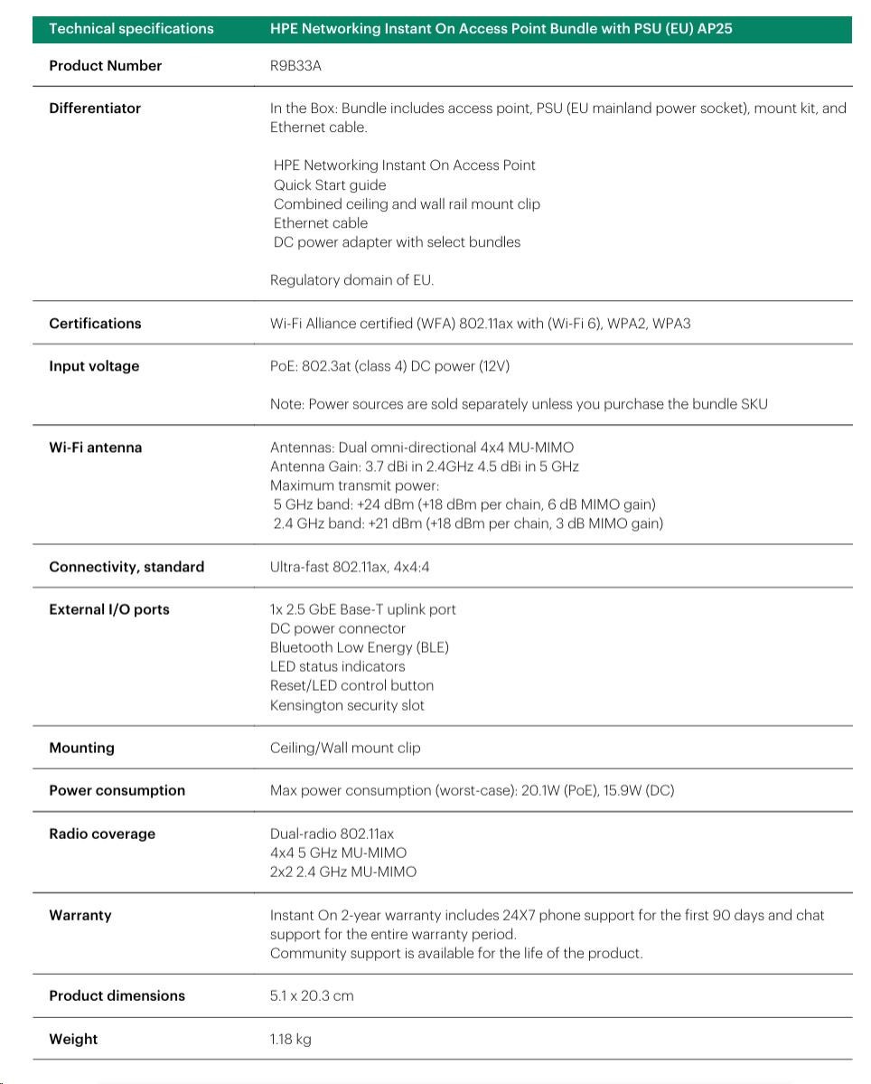 HPE Networking Instant On Access Point Bundle with PSU (EU) AP25 (R9B33A)