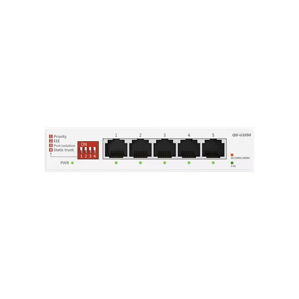 QG-U1050, 5portový 2,5G neřízený přepínač, podpora 4 inteligentních režimů, rozbočovač pro domácí síť, kancelářský ethernetový rozbočovač, Plug and Play, snadné nastavení, stolní provedení, tichý provoz.