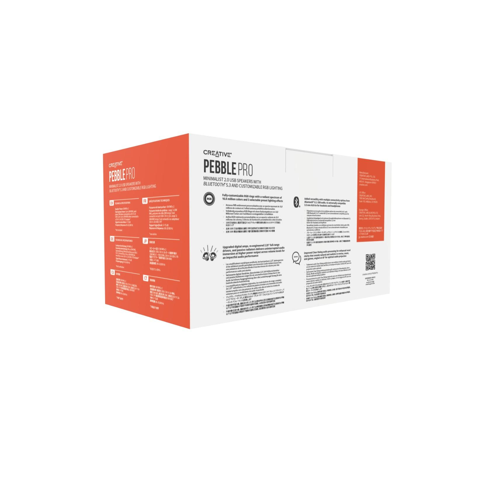 Reproduktory Creative Pebble Pro obsahují dvojici zcela nových, výkonných digitálních zesilovačů s vestavěným zpracováním zvuku, které jsou schopny zajistit 3,5× bohatší a hlubší basy, stejně jako zcela nový design reproduktorů, který byl od základu přepracován, aby se dosáhlo většího prostoru pro hlasitější a čistší zvuk. Díky tomu jsou reproduktory schopny zprostředkovat zvuk, který přesahuje jejich fyzické rozměry, a to napříč různými úrovněmi hlasitosti, aniž by se to jakkoli negativně projevilo na čistotě zvuku.
