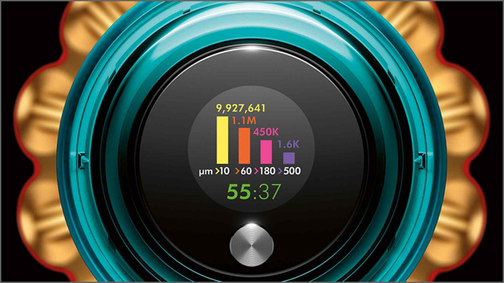 Displej LCD ukazuje, co bylo vysáto, a v reálném čase zobrazuje vědecký důkaz o hloubkovém čištění.
