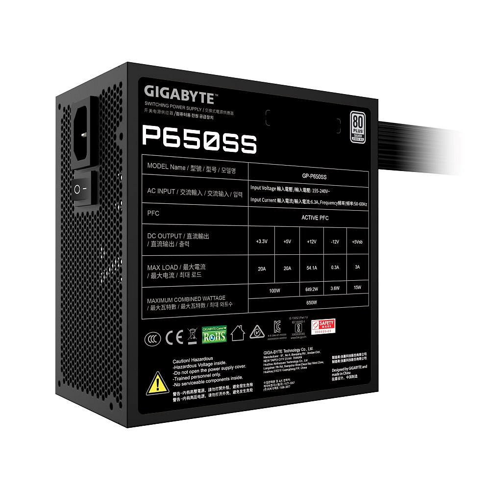 BAZAR - GIGABYTE zdroj P650SS, 650W, 80+ Silver, 120mm, ATX 3.0, černá - Poškozený obal (Komplet)