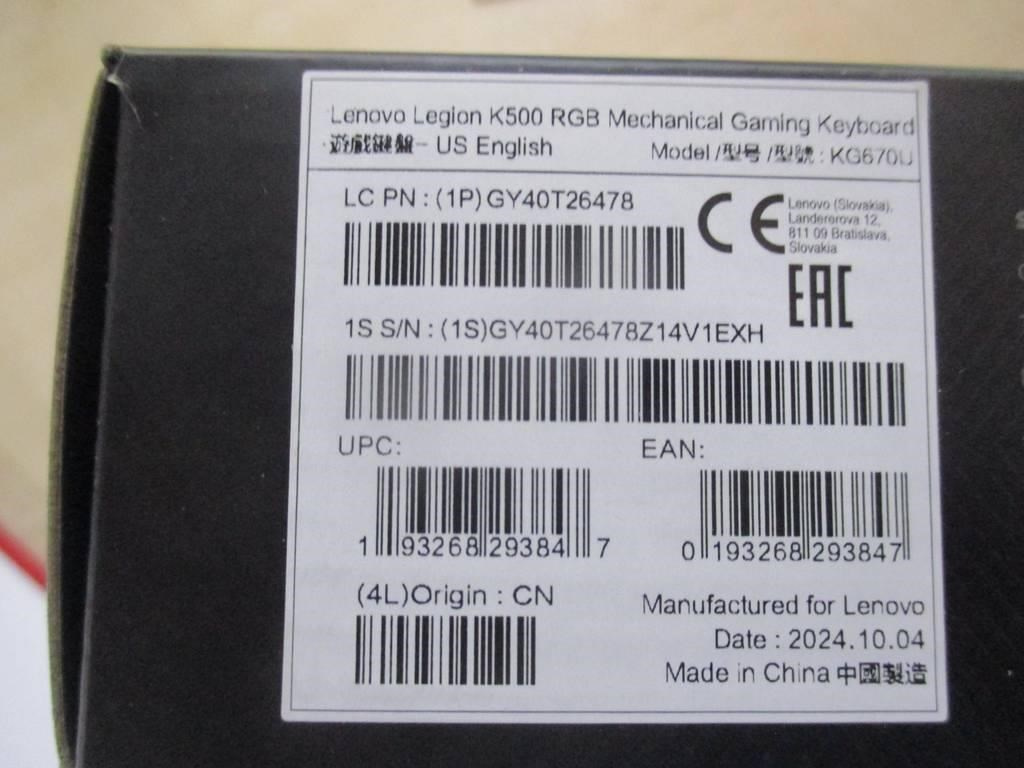 BAZAR - LENOVO Legion K500 RGB Mechanical Gaming Keyboard ( US English ) - Poškozený obal (Komplet)