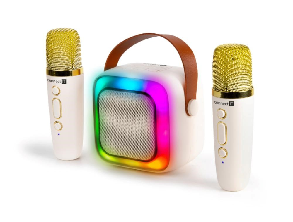 CONNECT IT Karaoke party reproduktor 2Mic, bezdrátový + 2x mikrofon, béžová