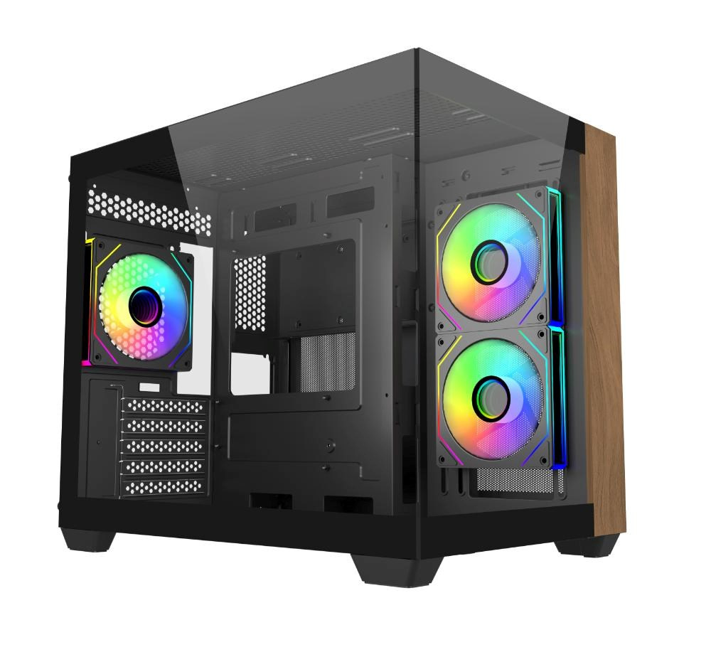 Elite 481 Wood přináší do výkonných počítačových sestav příjemnou domácí estetiku. Díky kompaktnímu dvoukomorovému uspořádání mATX a přednímu panelu vyrobenému ze skutečného přírodního dřeva v sobě spojuje moderní výkon s organickými designovými prvky. Díky bezproblémovým panelům z tvrzeného skla, vertikální podpoře chlazení a kompatibilitě s chladiči plné velikosti je Elite 481 Wood všestrannou skříní, která bez problémů zapadne do obytných prostor, kreativních studií nebo stylových herních sestav.