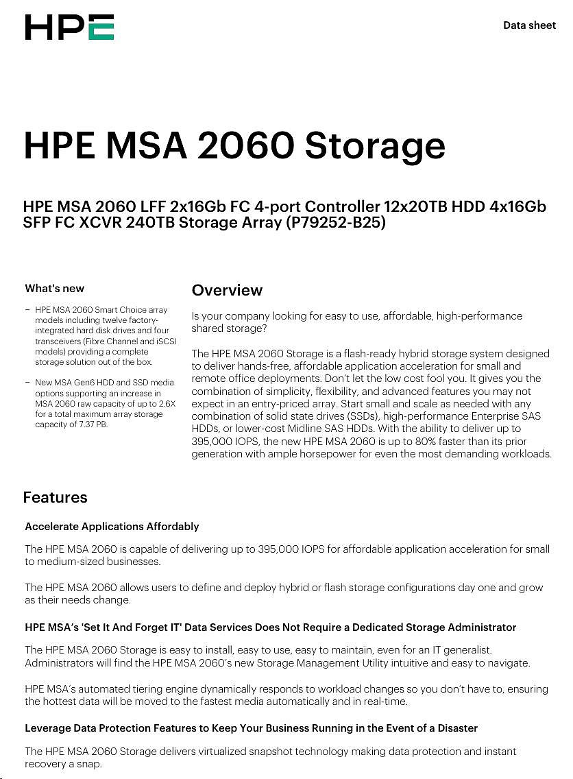 HPE MSA 2060 LFF 2x10/25GbE iSCSI Array.