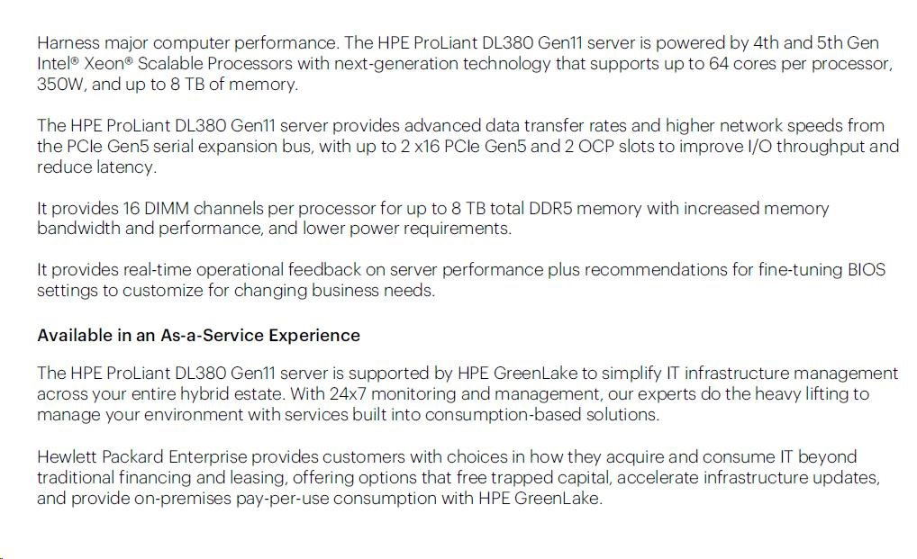 HPE PL DL380g11 4510 (2.4G/12C) 2x32G (p64706) 2x480G 8SFF MR408i-o 2x1000W 4p1To Smart Choice
