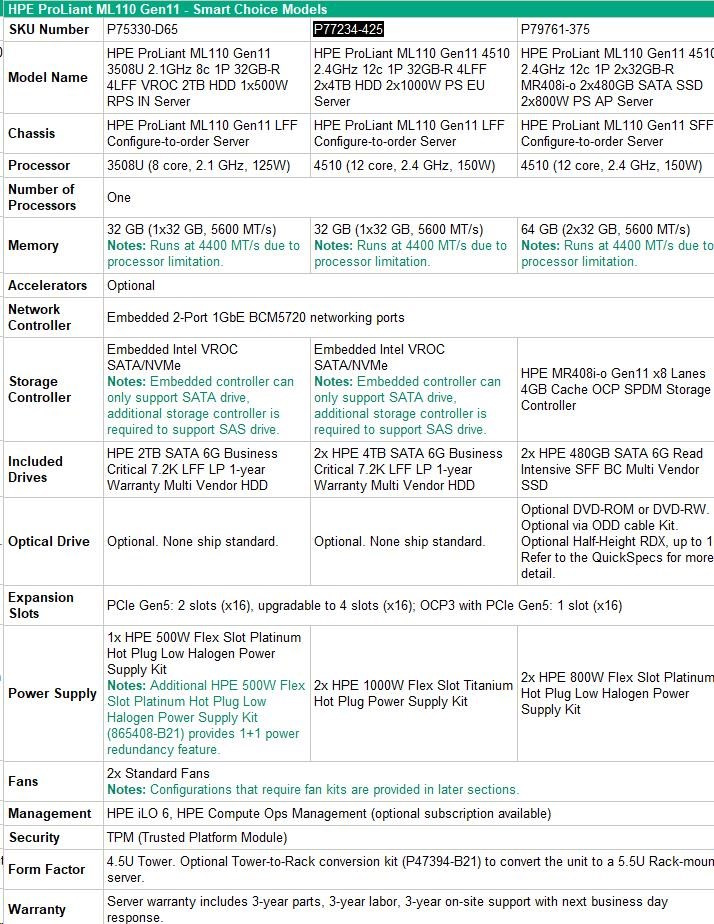HPE ProLiant ML110 Gen11 - Smart Choice Models