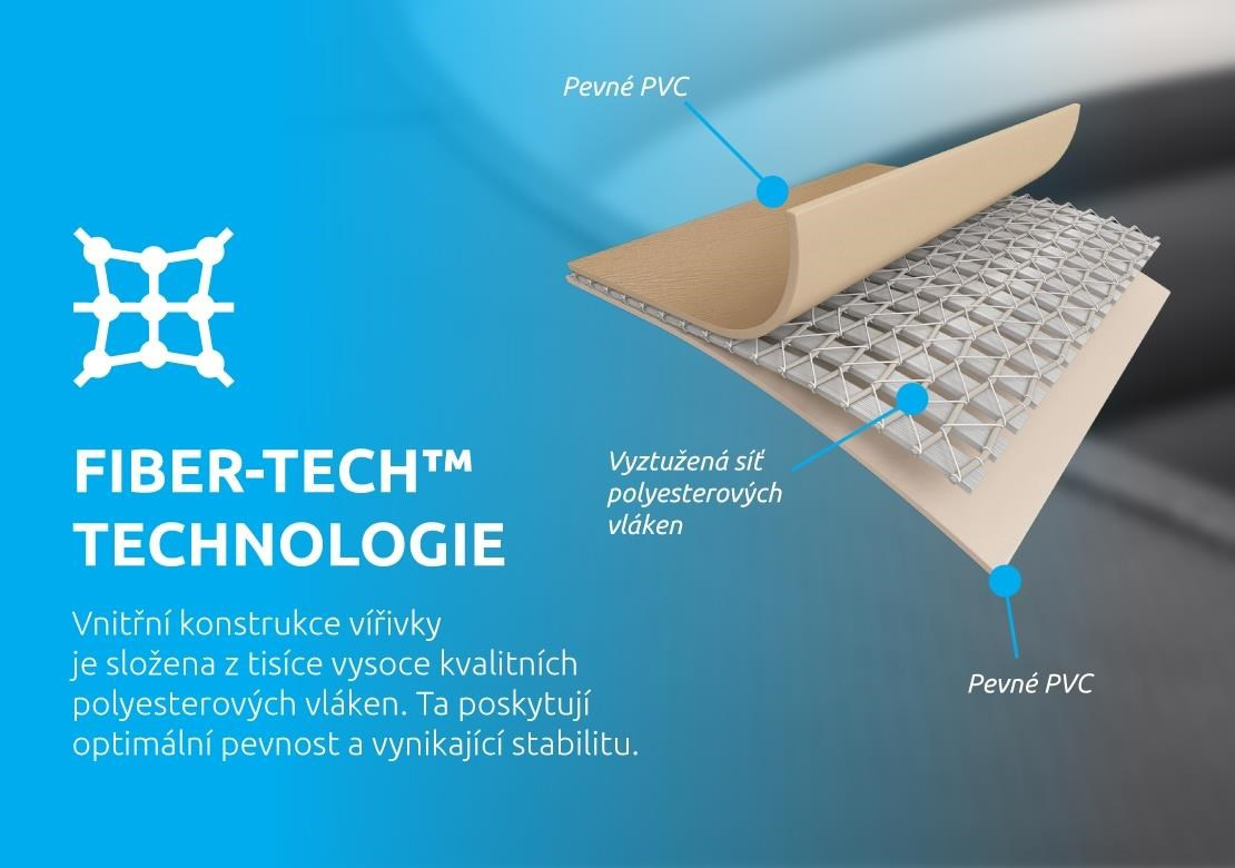 - Konstrukce vany: 48 FIBER-TECH BEAMS (silná polyesterová vlákna)