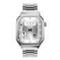Hodinky Iron S jsou navrženy s ohledem na mužské zápěstí. Jejich robustní konstrukce a vysoce kvalitní materiály zajišťují pohodlné nošení. Pouzdro hodinek je vyrobeno z elegantní kartáčované oceli. Sada obsahuje ocelový náramek, prémiový silikonový řemínek a nástroje pro zkrácení náramku a výměnu řemínku.