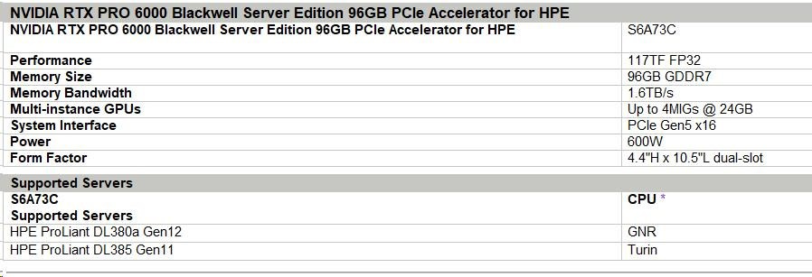 NVIDIA RTX PRO 6000 Blackwell Server Edition 96GB PCIe Accelerator for HPE.