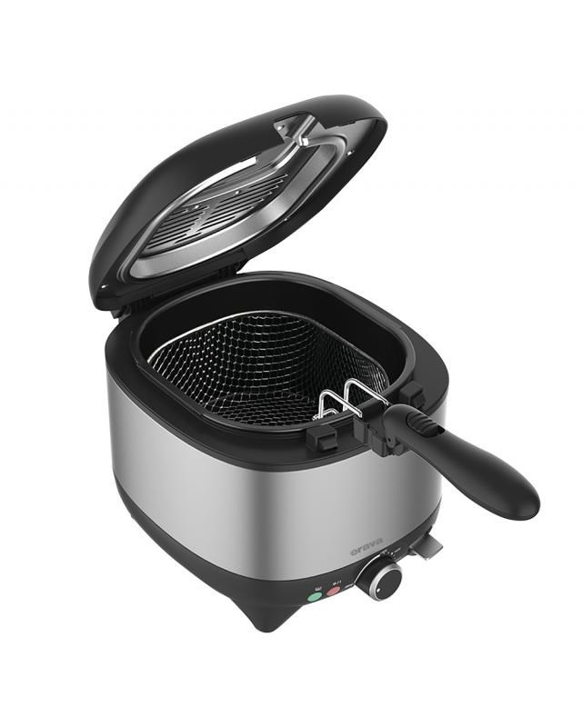 Smažené dobroty s Oravou Mladí i staří milují smažená jídla - nemohou se nabažit hranolek, smažených ryb, řízků nebo fašírky. Ani exotické pokrmy, jako jsou falafelové kuličky nebo asijské pochoutky v těstíčku tempura, si u nás již našly své věrné příznivce. Jakékoli smažené jídlo je jemné, křupavé, lákavé na zakousnutí. A že by nad nimi odborníci na výživu lomili rukama? Pokud máte k dispozici šikovný přístroj, který vám se smažením pomůže, a místo slunečnicového oleje použijete kokosový, který se nepřipaluje ani neškvaří, budou i zastánci zdravé výživy hned spokojenější. Fritéza Orava FR-111 je pro domácí smažení jako stvořená. Díky svému čtvercovému půdorysu nezabere na pracovní desce mnoho místa. Může se pochlubit příkonem 1 600 W, otočným ovládáním teploty a také praktickým mechanismem pro sklopení rukojeti fritovacího koše. Drátěný fritovací koš, horní kryt a fritovací nádobu s maximálním objemem 2,5 litru na olej a nepřilnavým, dvojitým povrchem lze po použití snadno vyjmout a důkladně umýt, aby se ve fritéze nehromadily připálené zbytky oleje. Horní kryt spotřebiče zabraňuje vystřikování oleje při smažení, ale je vybaven praktickým průzorem, abyste měli smažení neustále pod kontrolou. Velký koš a objem až 2,5 l Fritovací hrnec má objem až 2,5 litru a drátěný fritovací koš je dostatečně velký. Můžete tak najednou usmažit opravdu velkorysé porce, které nasytí celou rodinu. Do fritovacího koše se snadno vejde velký řízek, pořádná porce rybího filé nebo hromada pečených hranolků. Už žádné dlouhé čekání, než se všichni u stolu nasytí smaženého jídla. Tepelně izolovaný povrch Bezpečnost je na prvním místě. Fritovací hrnec má tepelně izolovaný povrch včetně rukojeti pro upevnění fritovacího koše, takže vám nehrozí, že se při smažení spálíte. Mezi důležité bezpečnostní prvky patří červená kontrolka, která signalizuje, že je spotřebič zapojen, a zelená kontrolka, která signalizuje, že se zvyšuje teplota spotřebiče a fritéza se zahřívá. Riziko prskání oleje je eliminováno zavíracím horním krytem spotřebiče.. Velký průzor pro smažení pod kontrolou Nemusíte otevírat horní část fritézy a riskovat, že vás zasáhne olej prskající všemi směry, abyste měli přehled o stavu smažených dobrot. Na otevíracím víku spotřebiče je velké průhledné plastové okno, přes které dobře vidíte a máte smažení pod kontrolou. Díky tomu můžete smažené potraviny vyjmout z hrnce dříve, než se stihnou připálit..