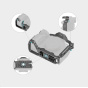 Zajišťuje fotoaparát pomocí jednoho spodního polohovacího kolíku, jednoho šroubu 1/4"-20 a jednoho šroubu M2,5 na levé straně.