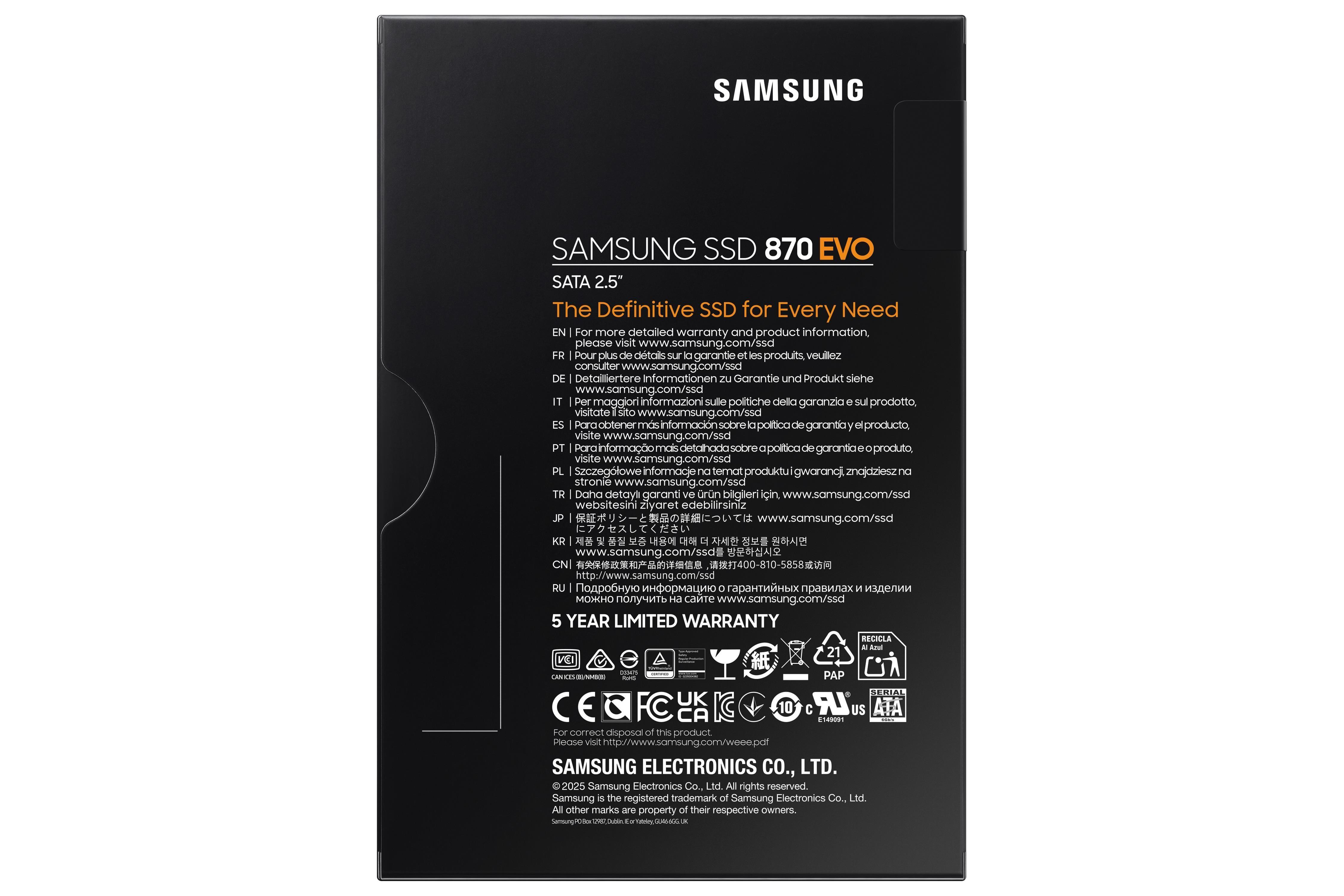 870 EVO prošel testy kompatibility s hlavními hostitelskými systémy a aplikacemi, včetně čipsetů, základních desek, NAS a nahrávacích video zařízení. Jako poslední z celosvětově nejprodávanější řady EVO je 870 EVO osvědčený ve své všestrannosti a kompatibilní se systémy a požadavky každého uživatele.