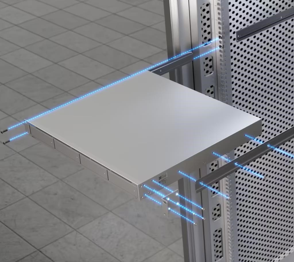 1U rack-mount NAS with (4) 2.5/3.5" HDD bays and (2) M.2 NVMe SSD cache slots, delivering faster access, lower latency, and high-availability 10 Gbps networking for large-scale file storage and sharing..