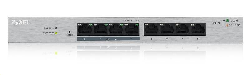 Zyxel GS1200-8HP 8-port Desktop Gigabit Web Smart switch, 4x PoE 802.3at, PoE budget 60W, fanless